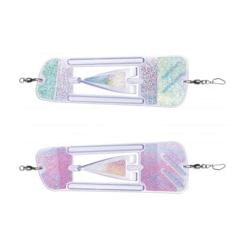 ?The Coyote Cyclone™ Flasher is an easy pulling, fully rotating flasher. The flasher rolls in a wide elliptical pattern imparting fish attracting flash and motion to your presentation. The center “Cyclone” blade rotates independently adding a strobing flash and vibration. The Kick-Fin design keeps the flasher rolling over a wide range of speeds.